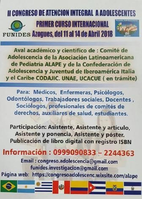 II Congreso de Atención Integral a Adolescentes. I Curso Internacional. 11 a 14 de abril de 2018. Azogues, Ecuador